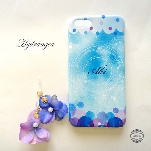 あじさいと、水たまりに映る空をケースにデザインしました。