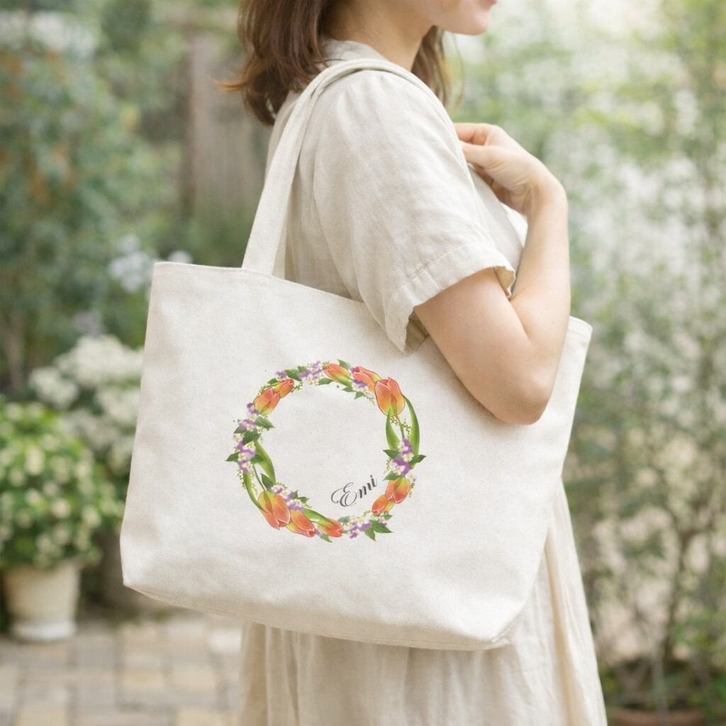【名入れ可】誕生花A4トートバッグ|選べる誕生花・ポストカード付き|誕生日|出産祝い|母の日|ハナリエ