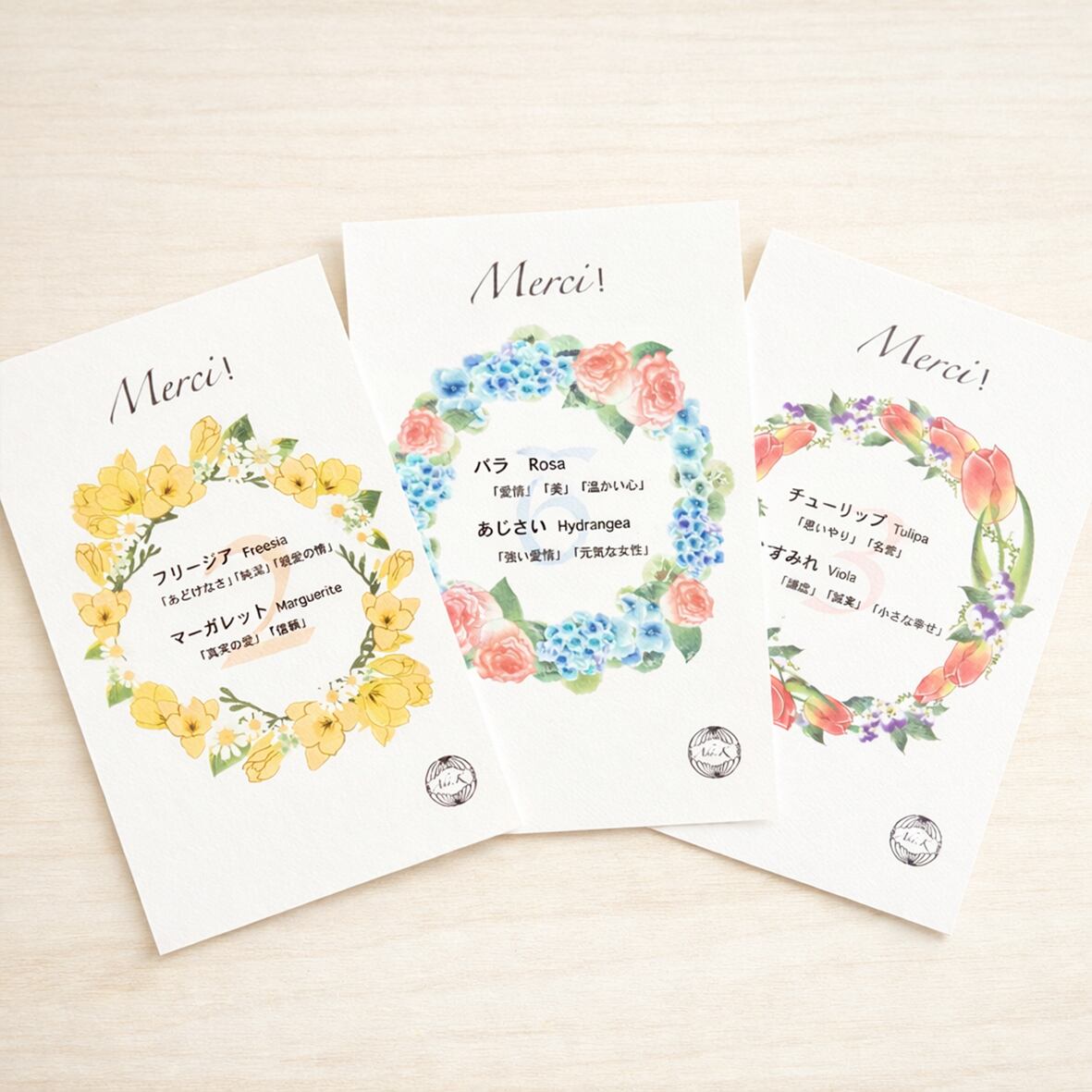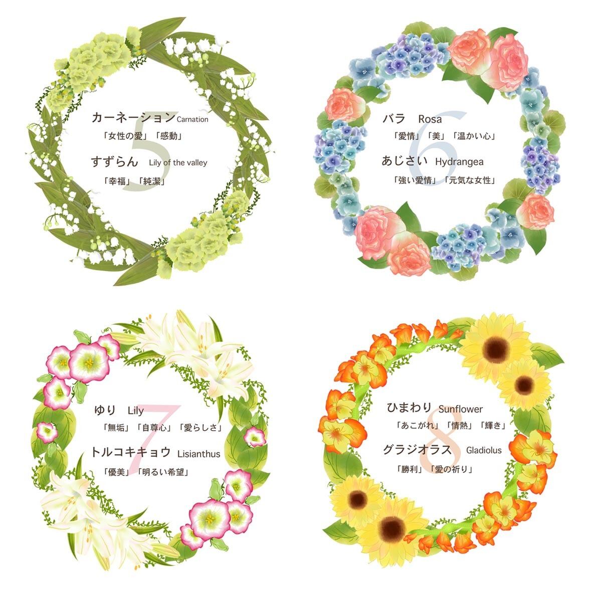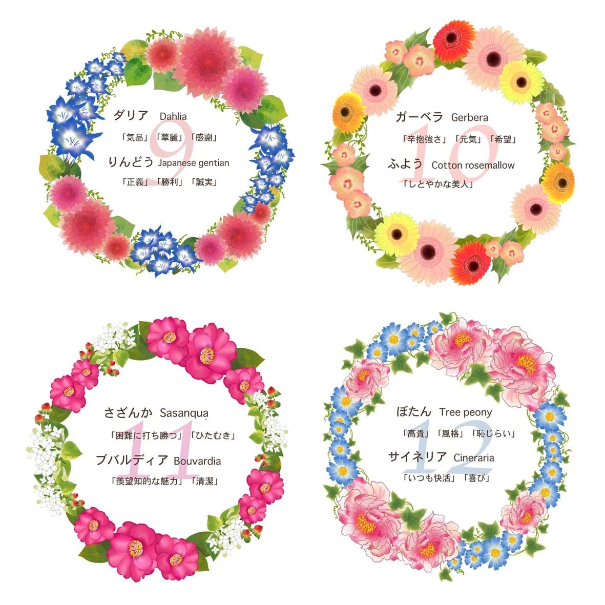 幸せな花言葉をもつ、12ヶ月の誕生花とお名前をプリントします。